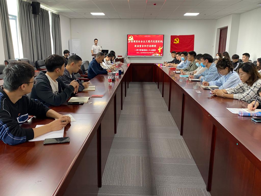 为推动党的二十大精神入脑入心,11月11日下午,公司党委书记卢鹏宇在学院学术报告厅以“全面建设社会主义现代化国家的政治宣言和行动纲领”为题,为研究生党支部讲授专题党课。公司党委副书记刘新,全体研究生党员、共青团员参加活动。